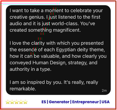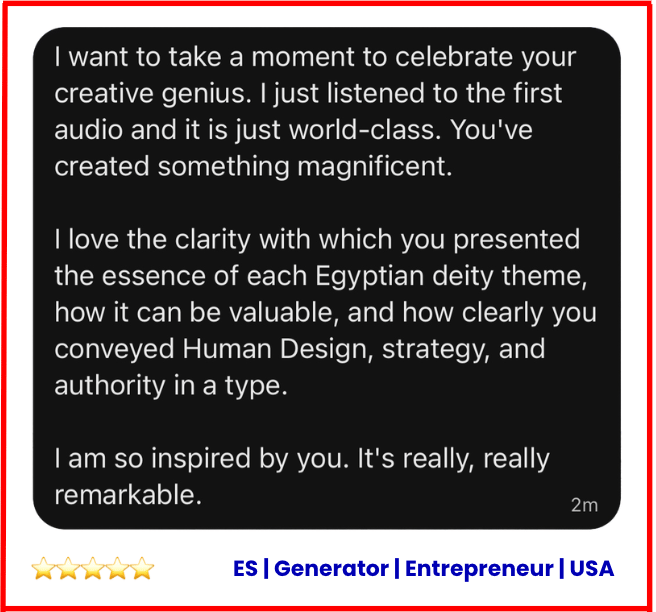 2. Egyptian Energetics: Ancient archetypal wisdom layered with HD precision (this fusion is unique to my work)