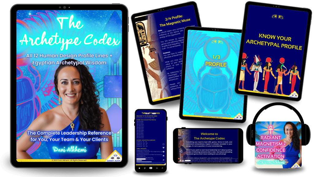 It reveals all 12 Human Design Profile Lines and their Egyptian archetypal pairings - so you can understand not just your own leadership style, but how your partners, team, clients, and even your kids operate.