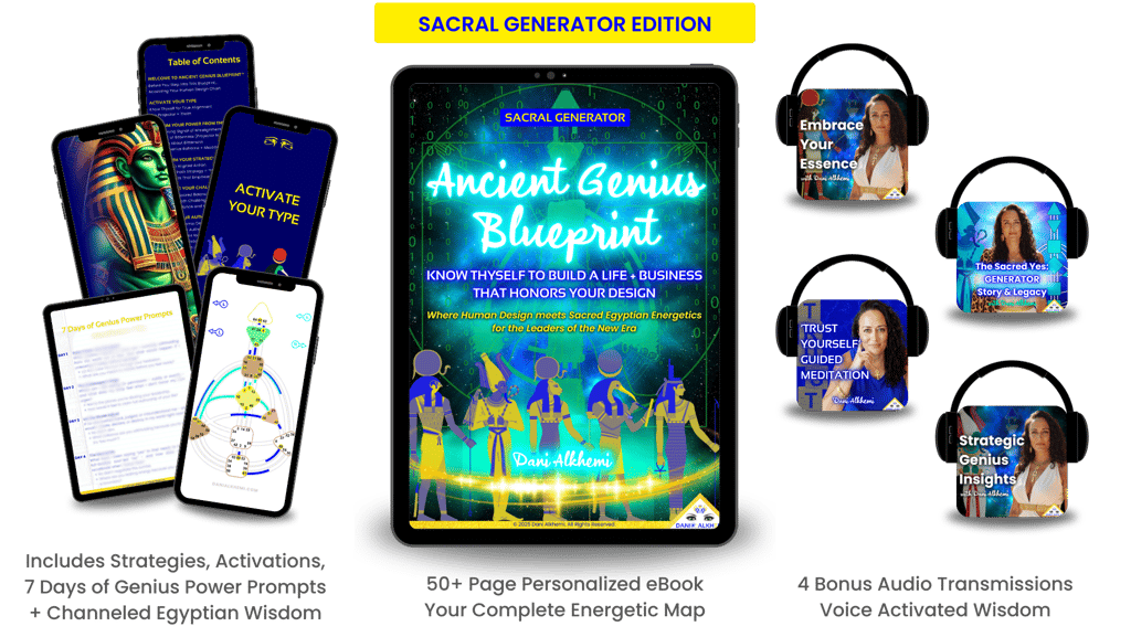 This is where Human Design meets Sacred Egyptian Energetics - ancient archetypal wisdom layered with modern energetic precision - personalized for your exact Type and Authority.